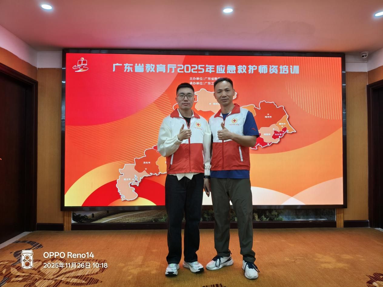 近日,由广东省教育厅主办、广东工业大学承办的2025年应急救护师资培训(第一期)在广州顺利举行。东莞理工学院作为广东省第三批全国学校急救教育试点单位,积极响应号召,选派陈壮有、郑幸光两位老师参加培训并顺利通过考核,取得红十字应急救护师资证书,为我校急救教育师资队伍建设注入专业力量。 本次培训为期六天,紧密围绕红十字救护师资标准课程展开,涵盖红十字运动知识、救护概论、心肺复苏(含AED使用)、创伤救护、...