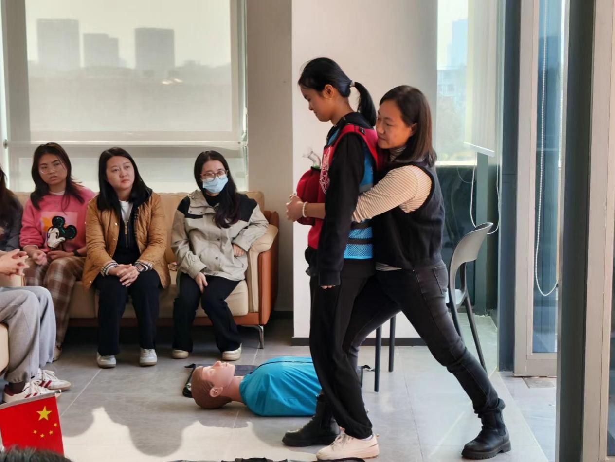 1月15日下午,应急救护培训在松山湖校区国际创新区中法学院教工小家顺利开展。本次培训由我校应急救护师资莫晓红主讲,“知行护航”应急救护队两名导生作为志愿者协助培训进行,吸引了10余名中法学院教师参与。