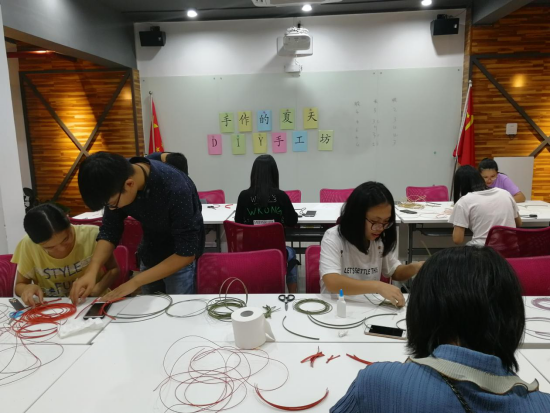 期间,松山湖校区的11名社工和莞城校区的5名社工都进行了暑期探访这一常规活动,来到了留校学生的宿舍,了解了他们留校期间遇到的困难,为他们答疑解惑,给予他们关怀并征求了其对社区建设发展的建议。同时,还开放了松山湖校区的莞雅学习室和学生社区知行学院会议室,为留校学生提供学习场所,此举给同学们带来了学习上的便利,获得了一致好评。此外学生社区知行学院还开展了一系列有趣、有意义的开放性小组以及主题活动等。其中7月22日晚,知行学院“手作的夏天”DIY手工坊在莞雅分院活动室顺利开展。在DIY手工协会会长宋炜的指导下,社工与九位假期留宿的同学一同完成纸藤花篮的编织。7月21日及28日,在莞城校区莞和活动室举行了“花美人美心美,插花美育”活动。参与活动的同学们认真地跟着社工学习插花,基本掌握了花的修枝、拿放、造型、色调搭配和包装技巧,并进行了迷你花束和雨伞花束的制作。8月1日晚,“美食分享小组之记忆中的味道”活动在知行学院会议室顺利开展。社工与八名暑期留校学生一同制作、品尝武汉热干面和凉粉等特色小吃,并彼此分享关于记忆中的味道。8月23日晚,“齐烘焙,识朋友”大学生同辈群体交往兴趣小组在知行学院会议室成功开展,同学们通过此活动体验到了动手做烘焙的乐趣,丰富了其在校留宿的生活,找到了一个与同学彼此交流分享的平台。