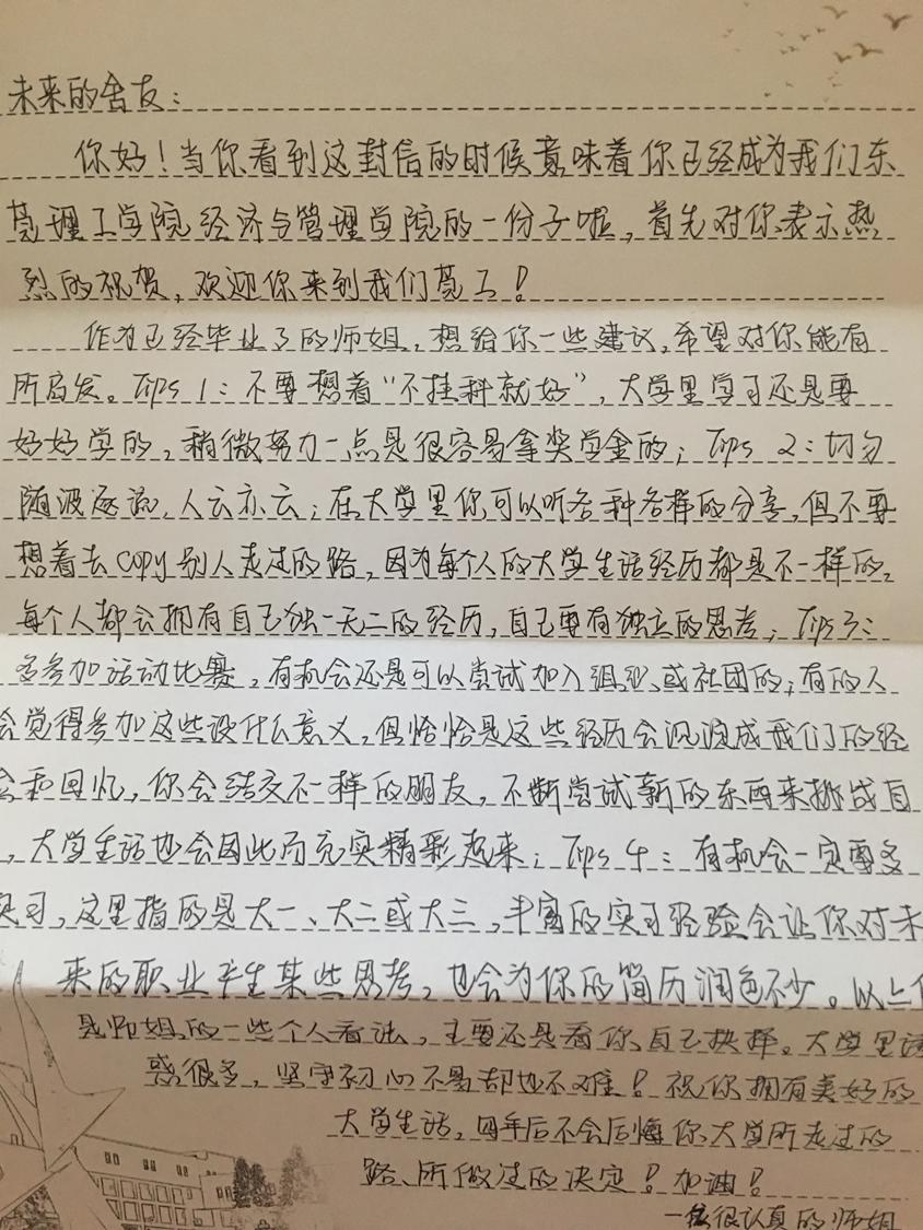 据悉,这是知行学院莞和分院温暖毕业的活动之一,前期已开展了“我为师兄师姐送祝福”——手写明信片活动,饱含师弟师妹祝福的1300多枚明信片已发到毕业生手中。在毕业生中开展的“我为未来舍友写封信活动”也得到了广泛的响应,100多封带着毕业生满满爱意的书信也将交到2019级新生手中。