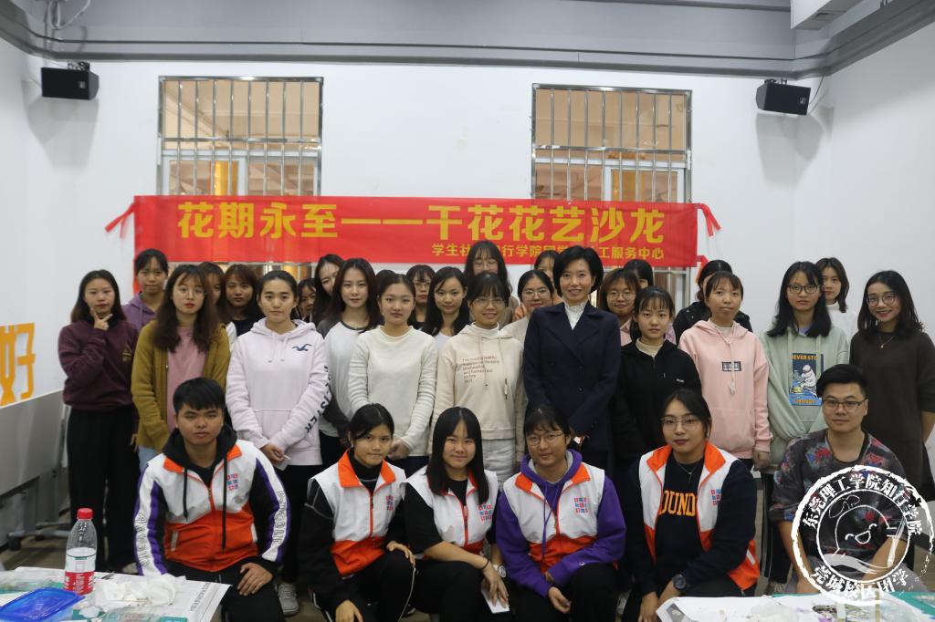 12月3日至12月12日,学生社区知行学院(莞城校区)在莞思活动室举办三期“花期永至——干花花艺”沙龙,知行学院吴云开老师,驻校社工李嘉雯及30余名学生参加。