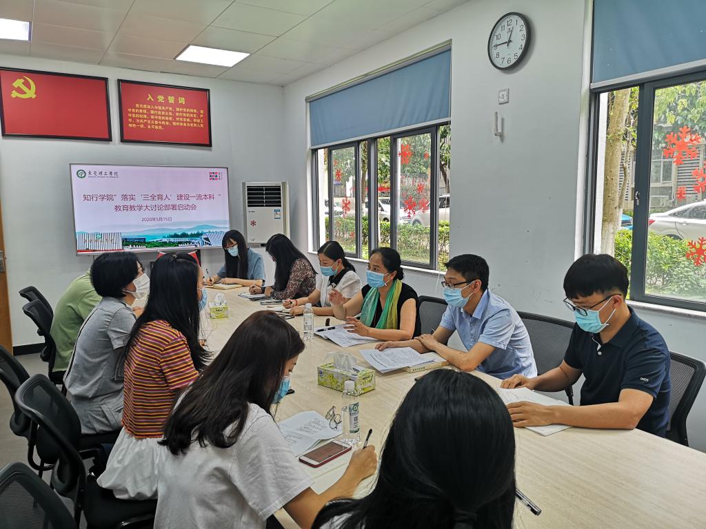 5月15日,学生社区知行学院落实学校“‘三全育人’ 建设一流本科”教育教学大讨论启动会在学院会议室15A109举行。学生社区知行学院常务副院长苏亚玲、知行学院各部门工作人员、全体驻校社工参会。
