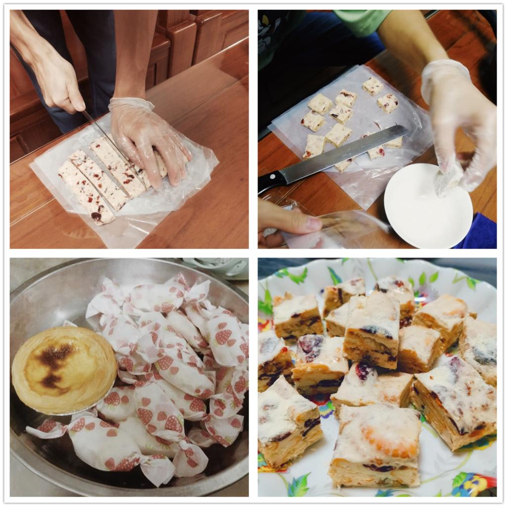 疫情以来,宅家时间居多,大家对制作美食的兴趣也越来越高。活动预告推出后,学生积极参与,同学们纷纷在咨询群里互相讨论,交流分享各自曾经制作成功的经验。参与者通过线上图文教程学习的方式,并结合个人的喜好添加食材,充分发挥创造力,做出各式各样的牛轧糖。有同学表示:“这周末恰好是母亲节,可以借此机会亲自做一份牛轧糖送给妈妈,表达自己一份感恩的心意。”