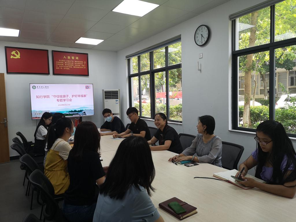 6月23日,学生社区知行学院开展“守住钱袋子,护好幸福家”专题学习会,知行学院常务副院长苏亚玲、学院各部门负责人以及相关工作人员参会。