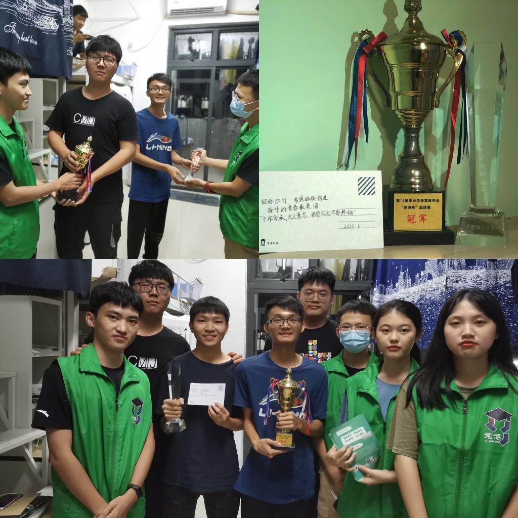 全是男生居住的莞博分院中的21304宿舍,收到的祝福就更为特别了,他们收到了在这个宿舍住过的师兄们曾经在校获得的奖杯,“第14届职业生涯发展协会‘职协杯’篮球赛冠军”,他们齐声惊呼这是入住该宿舍最好的见面礼了,接过沉甸甸的奖杯,仿佛是从素未谋面的师兄们手中接过了团结一致的宿舍情谊和拼搏向上的奋斗精神,他们表示奖杯象征的是该宿舍的“团魂”,他们不仅会好好保存这个奖杯,激励他们在大学四年努力奋进,也一定会在毕业后将这份珍贵的精神继续传承下去。21304的林锐善同学还说“希望共同努力,能够将莞博社区的文化精神传承下去。”