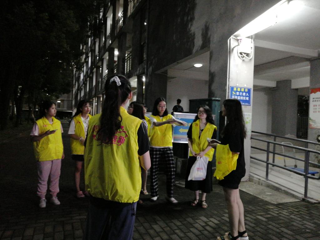 为加强社区楼层秩序管理和安全防范,9月17日、18日晚,莞馨社区学生志愿者骨干策划并召集志愿者开展本学期第一期社区巡夜志愿活动。