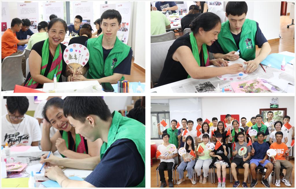 家是最小国,国是千万家。当中秋遇上国庆,就是最美中国节。活动开始,社区导生向同学们简单介绍中秋节的来历和习俗,社工周翠玲简述团扇的寓意和制作方法。随后,同学们两两合作以绘画、剪纸、干花装饰等方式创作“中秋、国庆”主题团扇。活动进行时苏亚玲老师坐在学生中间与一名同学一起创作一把团扇。活动结束后,同学们表达自己团扇的寓意以及对中秋的理解和对祖国生日的祝福。其中电智学院的叶峻金同学激动并哽咽地说道:“中秋国庆19年一遇,19年前,中国获得奥运举办权,当时举国欢庆,19年后的今年,因为疫情中国充满挑战,在此祝愿祖国越来越强大,我们要不忘初心,砥砺前行!”