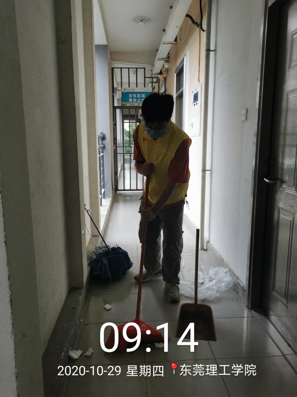 10月29日上午,为了让莞馨社区的同学们有一个舒适的公共环境,莞馨分院开展了社区3栋清洁志愿服务。