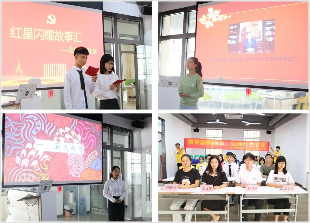 比赛伊始,主持人介绍嘉宾并宣读比赛规则。随后,梁尚智、叶燕玲、林妍涵等七位选手有序上场分享他们心中的红色英雄故事,如王进喜、黄旭华、杜富国等人的英雄事迹。其中,选手连文涛以退伍军人的身份述说了在加勒万河谷发生中印冲突的故事,分享他的切身体会与成长历程,展示了一个军人保家卫国的坚定信念与豪情壮志;选手陈远清更是以“扬国魂,凭军魂,似锦繁”主题述说了近代中国的浴血抗战,并提出倡议:当代青年应接下时代的接力棒,奋力奔跑,继往开来,为实现中华民族的伟大复兴不懈奋斗。最后,经由评委团评分并统计,林妍涵、陈远清、连文涛三位同学将作为红色故事讲解员代表莞思分院参加决赛。