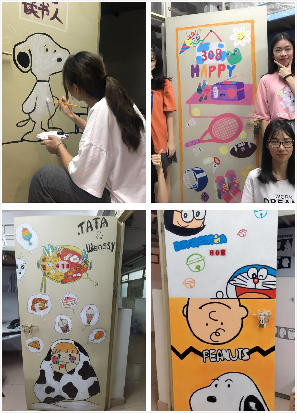 有同学表示:“宿舍门美化活动不仅锻炼我们的绘画能力和创造思维,还增进宿舍感情,营造和谐的宿舍氛围!”