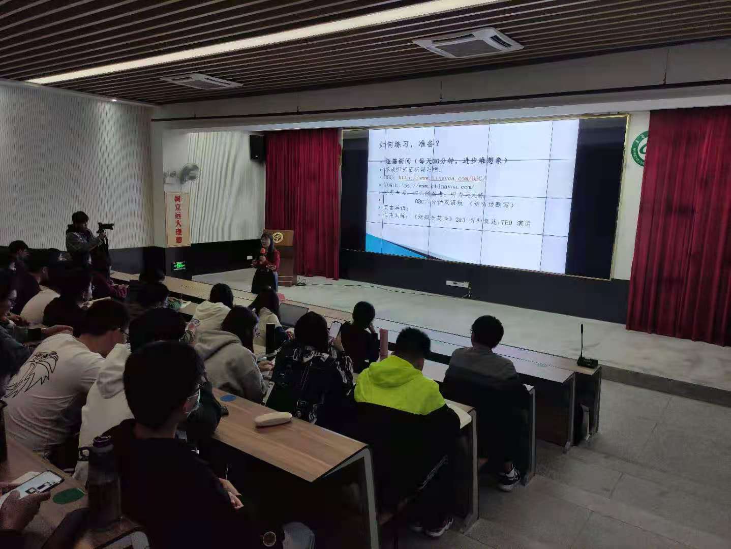 活动现场,王教授以一段流利的英文自我介绍开场,引出了本场讲座的主题;其次,王教授向同学们详细介绍了英语“四六级”考试的性质、时间、流程、题型以及证件要求,逐步引导同学们进入备考环节;随后,王教授从单词记忆法、不同题型的应试方法、听力能力提升等方面,分享了具体的备考方法和技巧,并告诫同学们:务必不能脱离听力去死记硬背,要将“听”“说”“读”“写”相结合,同时,推荐了“小芳老师”“英语巴士”“蔡雷英语”公众号以及“每日英语听力”app等网络资源,帮助同学们更加科学地备考;最后,通过问答的形式,王教授对观众的提问做出针对性的答疑解惑。