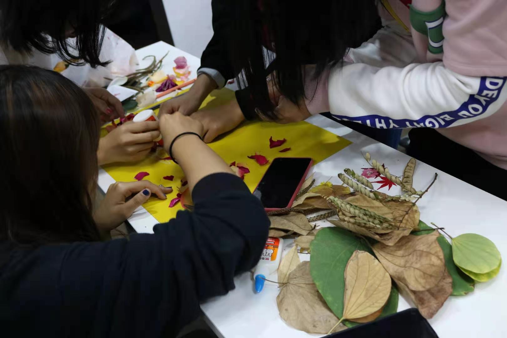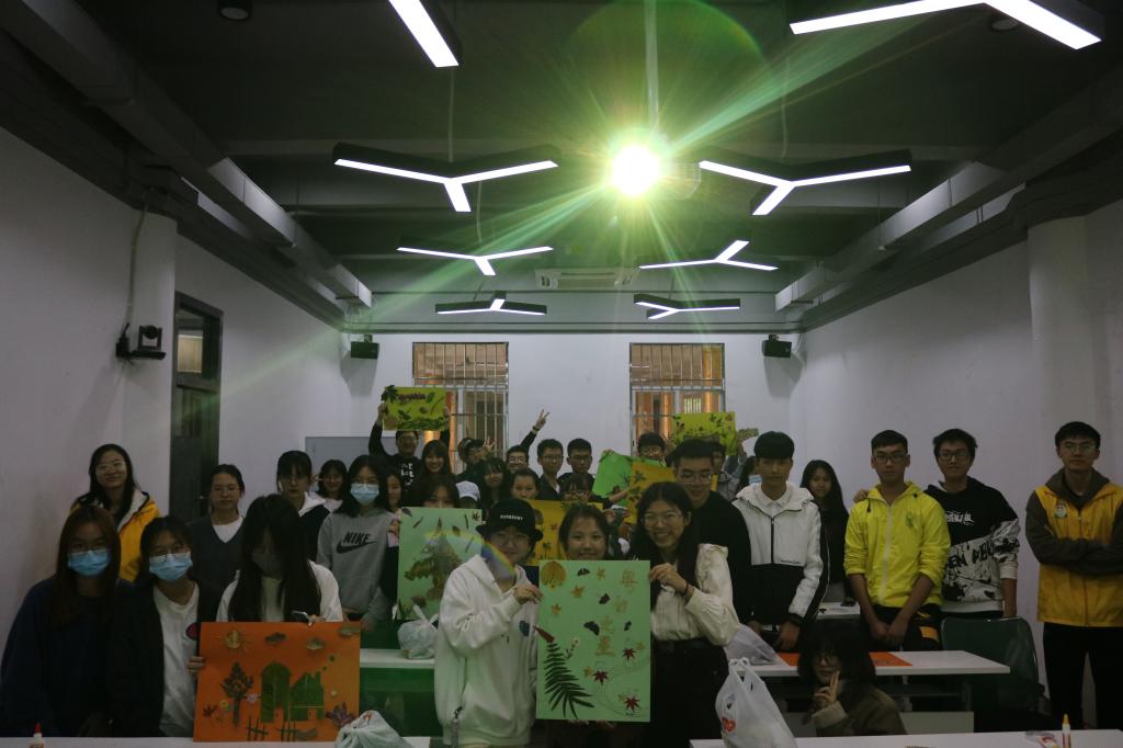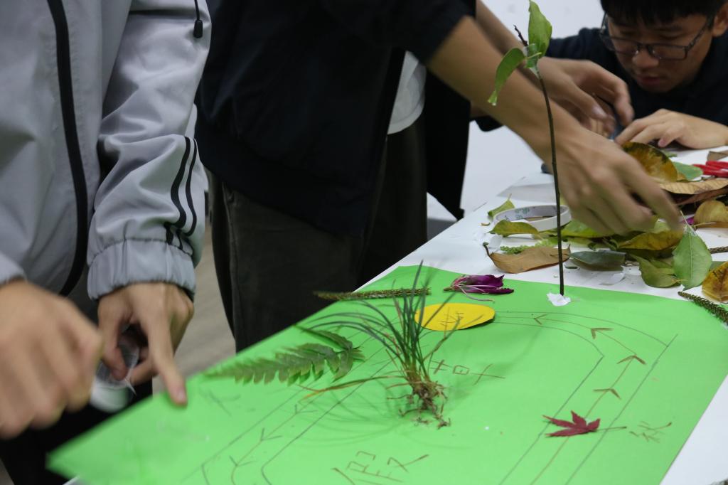 在活动过程中,同学们积极参与,在校区内捡拾落叶落花,用自己手中的树叶和花材,发挥充满创意的想象,展现非凡的动手能力,制作出各具特色的树叶画。有的树叶画是展示莞工冬天的操场,有的是体现依然绿意盎然的树木,有的是描绘莞工冬天里的精彩活动等等。这些树叶画无不展现出莞工学子的创造力与想象力。在分享环节,同学们也热情发言,展示各个小组的作品,表达对莞思社区和学校的美好祝愿与期望!