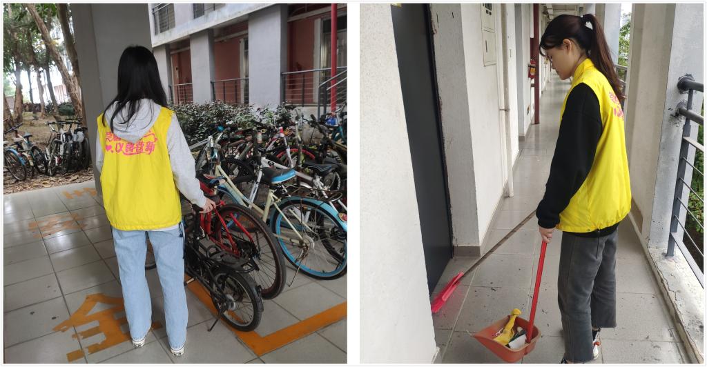 12月10日下午,为进一步优化莞馨社区环境,创建美好和谐校园,培养学生的公共卫生意识,形成良好的校园文明新风尚。因此,结合第十五期第一次“莞馨日”巡夜志愿服务的问题反馈,莞馨分院开展了楼道清洁志愿服务。本次活动主要通过招募卫生清扫志愿服务工作志愿者,按照安排去到相应区域对楼道和楼梯进行清扫,在完成清扫工作后整理自行车的摆放,改善停车环境。
