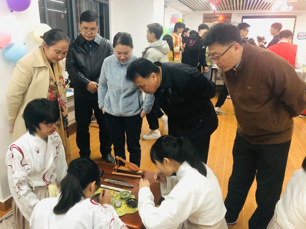 12月21日晚,莞香文化协会在松山湖校区的温暖冬至活动现场表演理香过程,我校校长、知行学院院长马宏伟,党委宣传部部长、知行学院副院长邹琼,学生社区党工委书记、党委学研工部部长黄金和,知行学院执行院长苏亚玲,粤台产业科技学院院长、知行学院副院长陈伟,共同观看了理香表演。