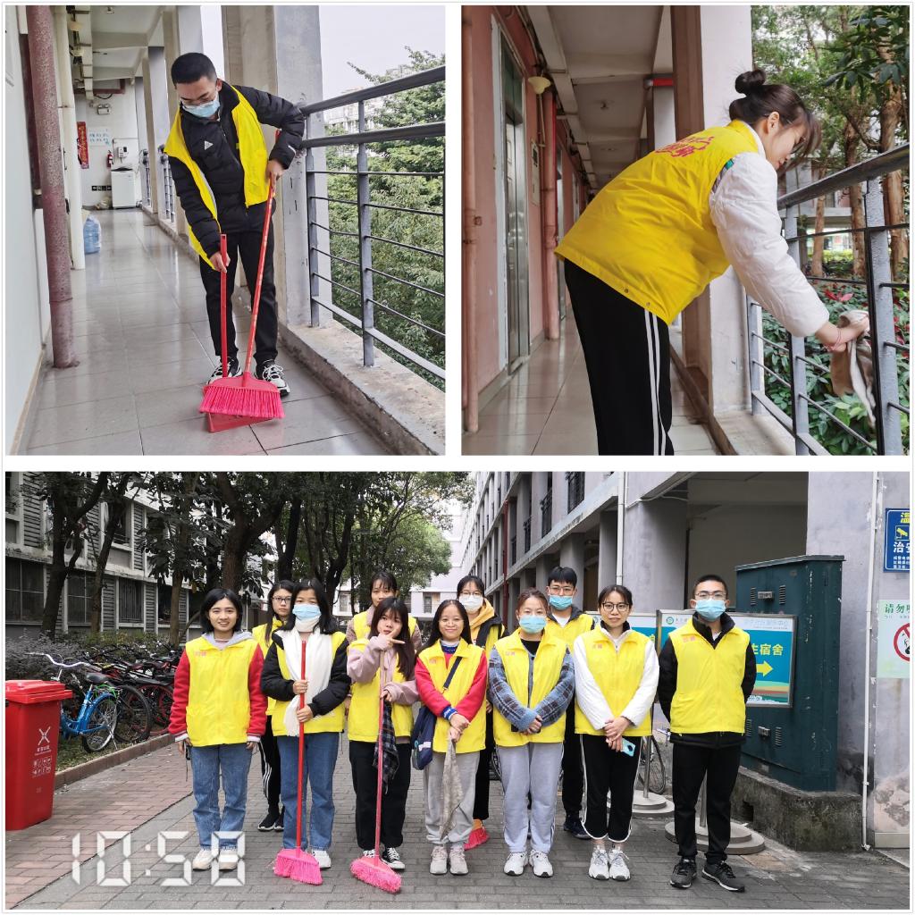 活动伊始,志愿者们在工作人员的指引下,到莞馨三室正门口集合并签到。工作人员讲解本次的服务内容与注意事项,随后将志愿者分成六组,分别对各楼层的走廊、楼梯以及栏杆进行清扫。志愿者们以认真负责的工作态度与乐于奉献的服务精神顺利完成本次志愿服务。最后,志愿者们到达莞馨三室正门口集合拍摄大合照并进行签退,宣告本次志愿服务正式结束。