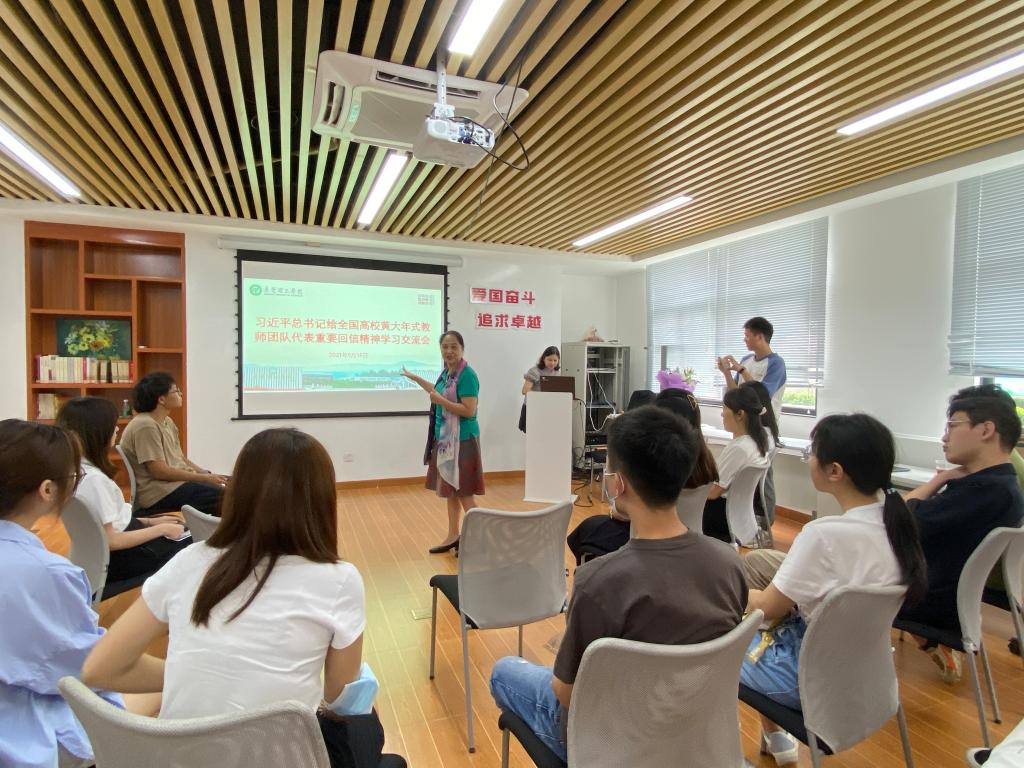 会上,大家踊跃发言,就自己的学习心得进行交流分享。知行学院执行院长苏亚玲分享了从小学到研究生阶段对她人生影响深刻的几位老师,表示要深刻认识教师工作的重要性,勉励老师们真正把为学、为事、为人统一起来。人文素质教育中心谈娟老师表示,身正为师、德高为范,作为一名教师要严格要求自己,用自己的实际行动做好学生的引路人。社区辅导员(驻校社工)李嘉雯表示,国家繁荣,民族振兴,教育发展,培养一支师德高尚、业务精湛、充满活力的高素质专业化教师队伍是必不可少的,要努力做党和人民满意的好老师。
