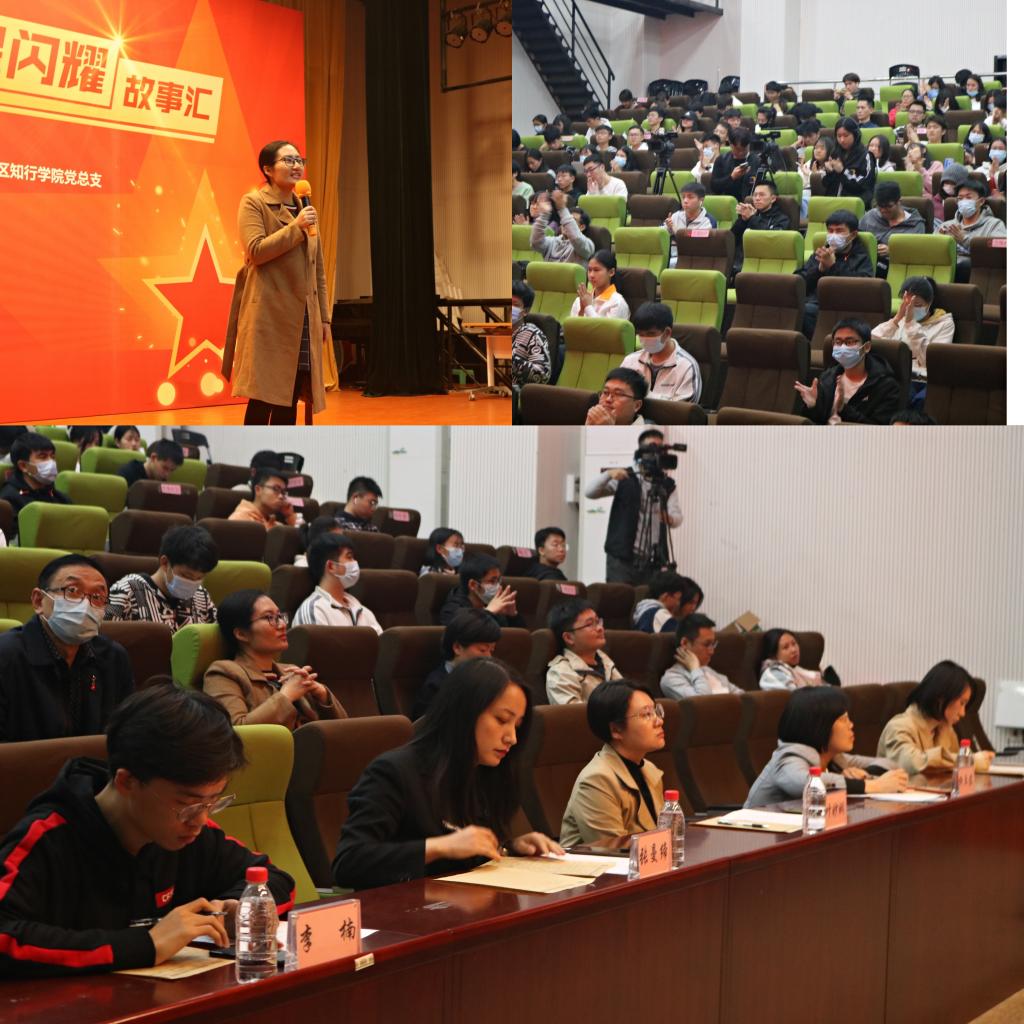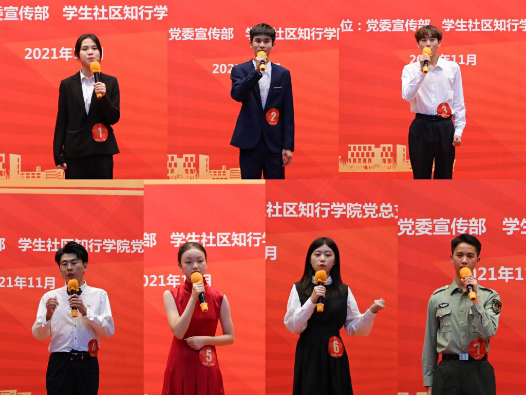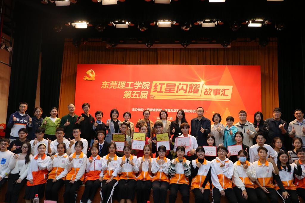 11月25日晚,由东莞理工学院党委宣传部、学生社区知行学院党总支联合主办的“红星闪耀故事汇”决赛在松山湖校区学生中心小剧场举行。担任本次活动评委的有校党委宣传部副部长叶妙娴,党委学研工部副部长、学生社区知行学院党总支副书记柳卓君,文传学院副教授、新闻学博士张曼缔,文传学院传媒系教师、上海戏剧学院电影电视学院媒介中心、纪录片工作室成员严楚晴,广东省朗诵协会会员、东莞市朗诵艺术家协会理事、东莞市朗诵会员艺术团团长助理李楠。校团委书记、党委学研工部副部长、学生社区知行学院执行院长劳丹,学生社区各党支部书记和学生代表等观摩了比赛。