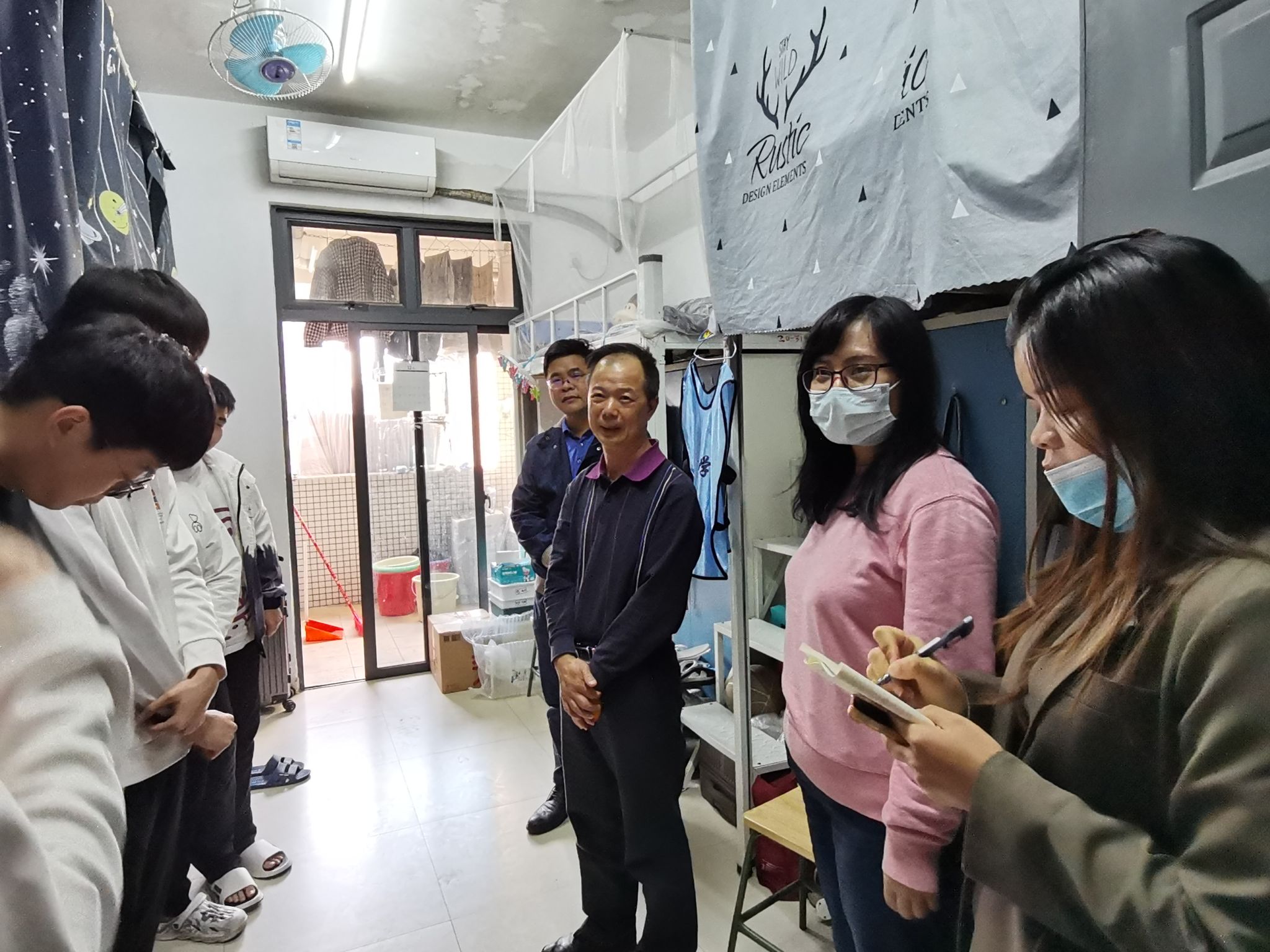 2月19日,我校学生新学期返校,校党委副书记李忠红,党委学研工部部长、学生处处长、学生社区知行学院党总支书记黄金和,校团委书记、学生社区知行学院执行院长劳丹以及知行学院工作人员一同走访杨振宁创新班学生宿舍,实地了解学生返校后的学习生活情况,第一时间为学生们送上关怀。