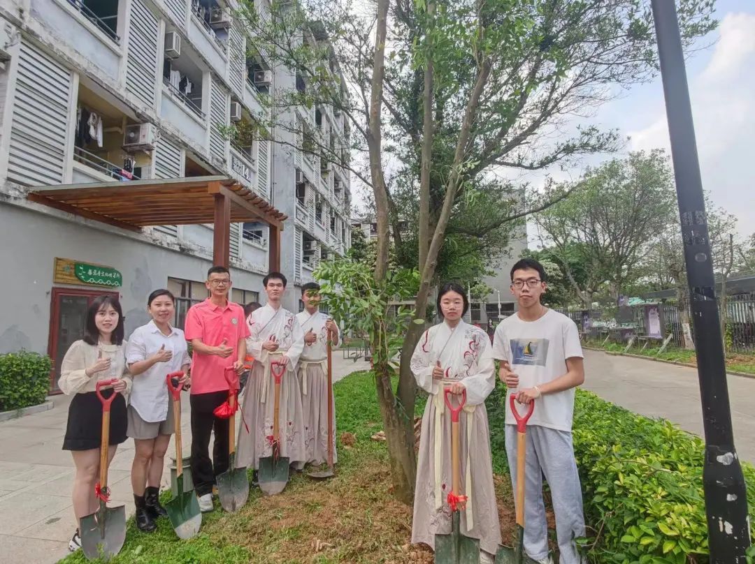 4月17日,学校莞香文化传承基地师生在莞香文化传习所门前栽培莞香树,基地指导老师阎江以及莞香文化协会师生参加了本次活动。
