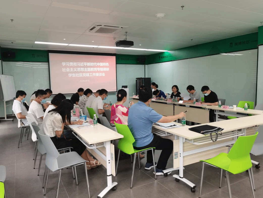 为深入贯彻学校主题教育工作部署,结合学生社区工作实际,找准党建引领,社区育人中的问题,提高学生社区党建工作水平。6月1日,学生社区知行学院(通识教育学院)在莞博社区活动室举办学生社区党建工作座谈会。会议由学生社区知行学院(通识教育学院)党总支副书记黄艺琦主持,组织统战部刘远飞科长、各社区党支部书记、辅导员代表、部分学院组织员、驻校社工代表参加了本次座谈会。