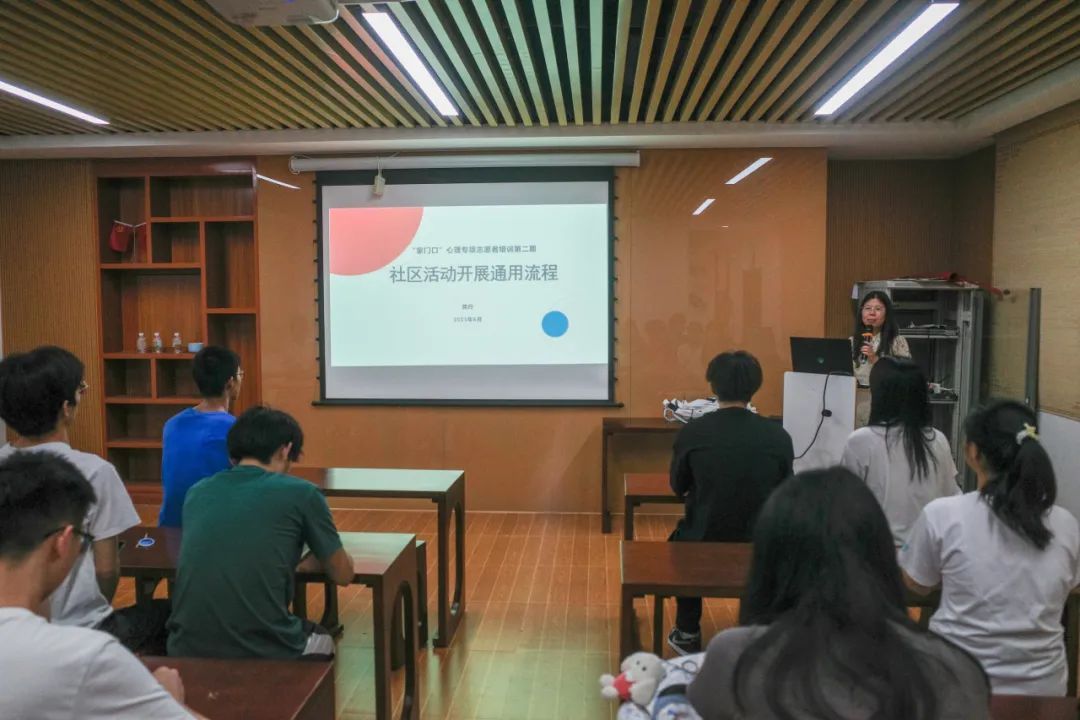自2013年起,我校在省内率先引入16名驻校社工,在学生社区开展个案辅导和小组活动,对心理困扰(或心理危机)学生进行“情境性”的主动干预。以社区为抓手,将心理育人环节前置,学生在社区就能接受心理健康的服务及科普。通过建立社区家门口心理服务+心理咨询中心双联机制,为学生构建“全方位、零距离、个性化”的心理健康服务体系,营造学生社区心理文化氛围,完善“助人-自助-互助”心理健康教育工作模式,发挥学生的主观能动性和创造性,为同学们纾心护航。
