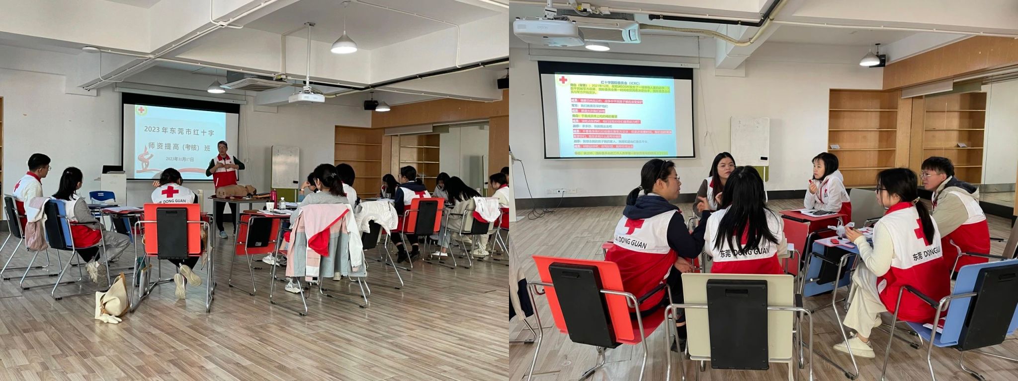 为进一步提高我校应急救护师资的理论与实操知识储备和教学能力,按照东莞市红十字会应急救护师资管理有关规定,11月17日,由东莞市红十字会和我校学生社区知行学院(通识教育学院)联合举办的应急救护师资提高(考核)班在我校学生中心A114举行,13名应急救护培训师资参加此次复训。