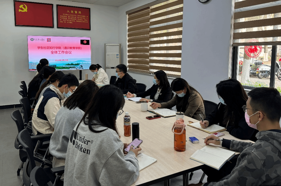 3月20日下午,学生社区知行学院(通识教育学院)举行本学期第四次驻校社工全体工作会议,就推进学生社区文化月系列主题活动及学期社区工作进行部署。学院党总支副书记黄艺琦主持会议,学院综合办公室相关人员、两校区驻校社工参加会议。