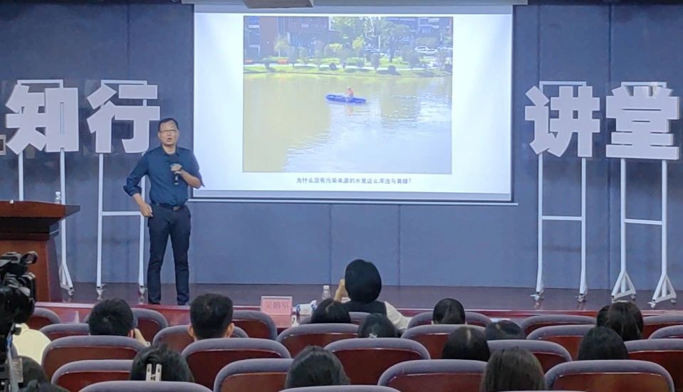 课堂伊始,吴老师通过鱼种类的照片吸引了众多同学们的注意。并通过环境照片的对比,分析出生物多样性和水体质量,公园红蚂蚁堆与当地蚂蚁数量都呈反相关关系,得出生物多样性越高环境越稳定的结论。