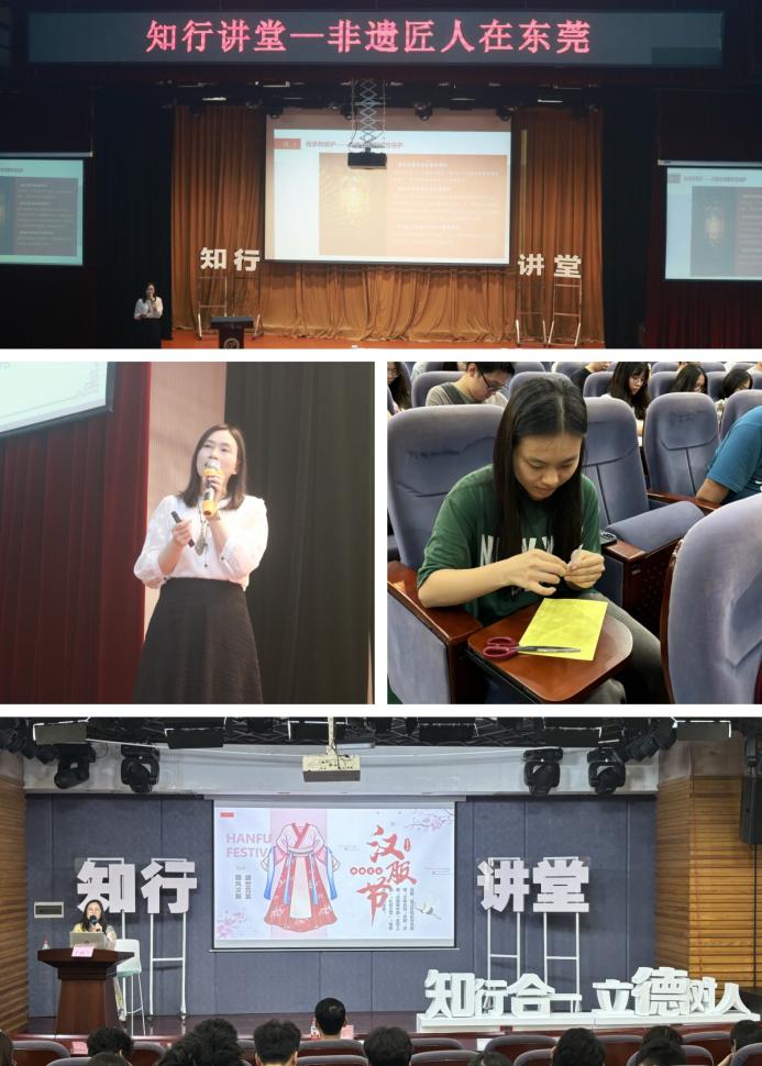 此外,知行讲堂仍如火如荼地开展。《非遗匠人在东莞》畅谈东莞非遗文化,细叙非遗的保护传承,弘扬非遗工匠精神,激发学生对非遗文化及中华优秀传统文化的热爱之情。《耕读服饰文化体验》则共赏汉唐传统美服,齐看今朝国风服饰,引领学生深耕服饰文化,弘扬华夏文化之美,增强民族文化自信。