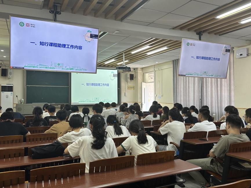 9月18日中午,本学期知行课程助理岗前培训在两校区线上线下同步进行,140余名知行课程助理参加本次培训。