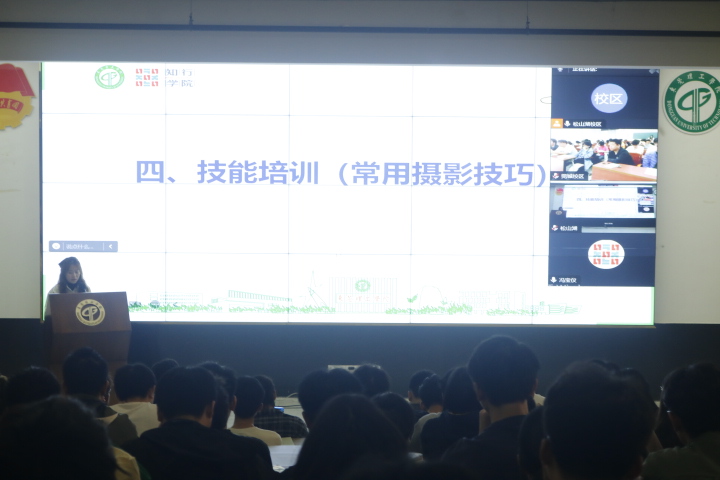 紧接着,学生媒体中心刘益民同学为助理们进行技能培训,用例子来讲解照片拍摄和视频录制技巧。
