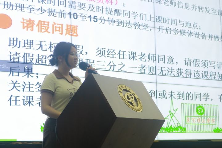 最后,社区育人学生办公室学习部钟美玲同学对助理们工作中的注意事项进行补充,并对同学们的疑问进行解答。