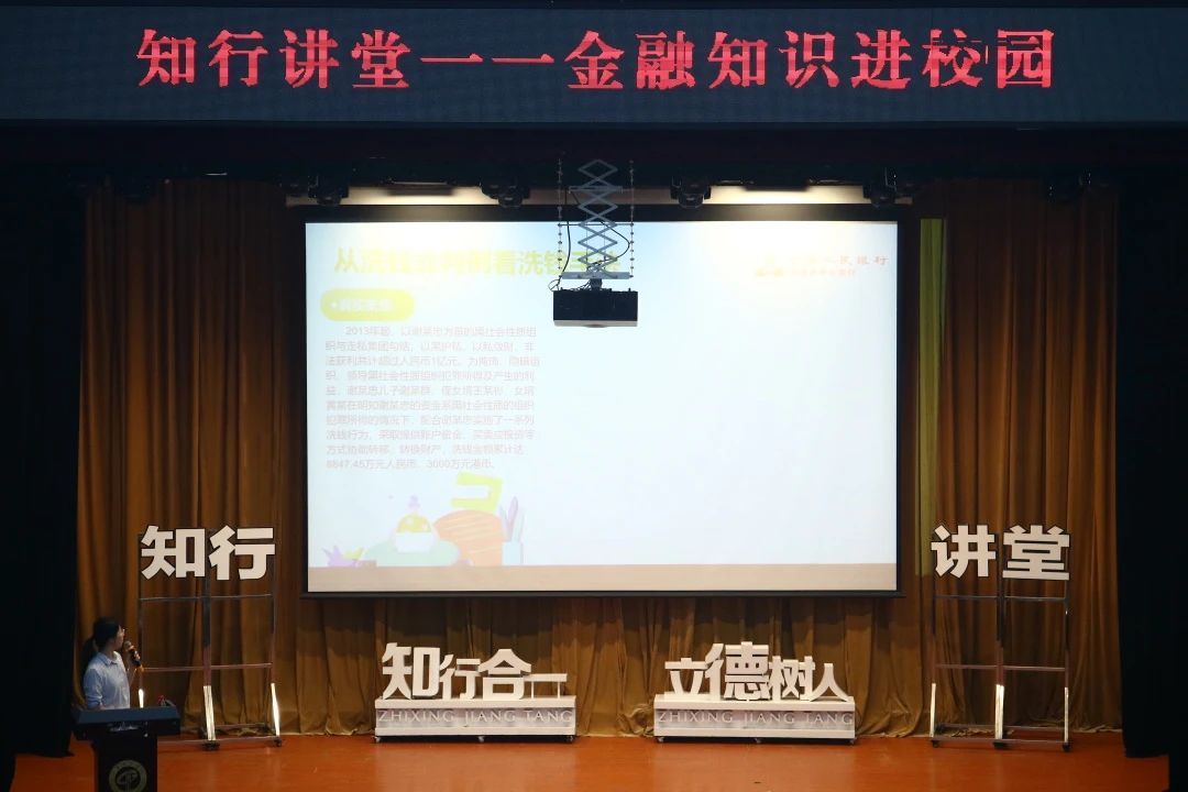 讲堂第一环节,由李泉颀老师带来以《保护自己,远离洗钱陷阱》为主题的讲座。李老师首先为我们介绍了洗钱的含义,并用《刑法修正案》里面的内容着重说明了洗钱是一件违法行为。接着李老师便从案例分析入手为同学们介绍了洗钱手法,以及常见的洗钱套路,其中详细介绍了洗分这一洗钱手法。李老师提醒了大家洗钱的危害,并在最后为同学们播放了反洗钱宣传教育视频,让同学们受益匪浅。