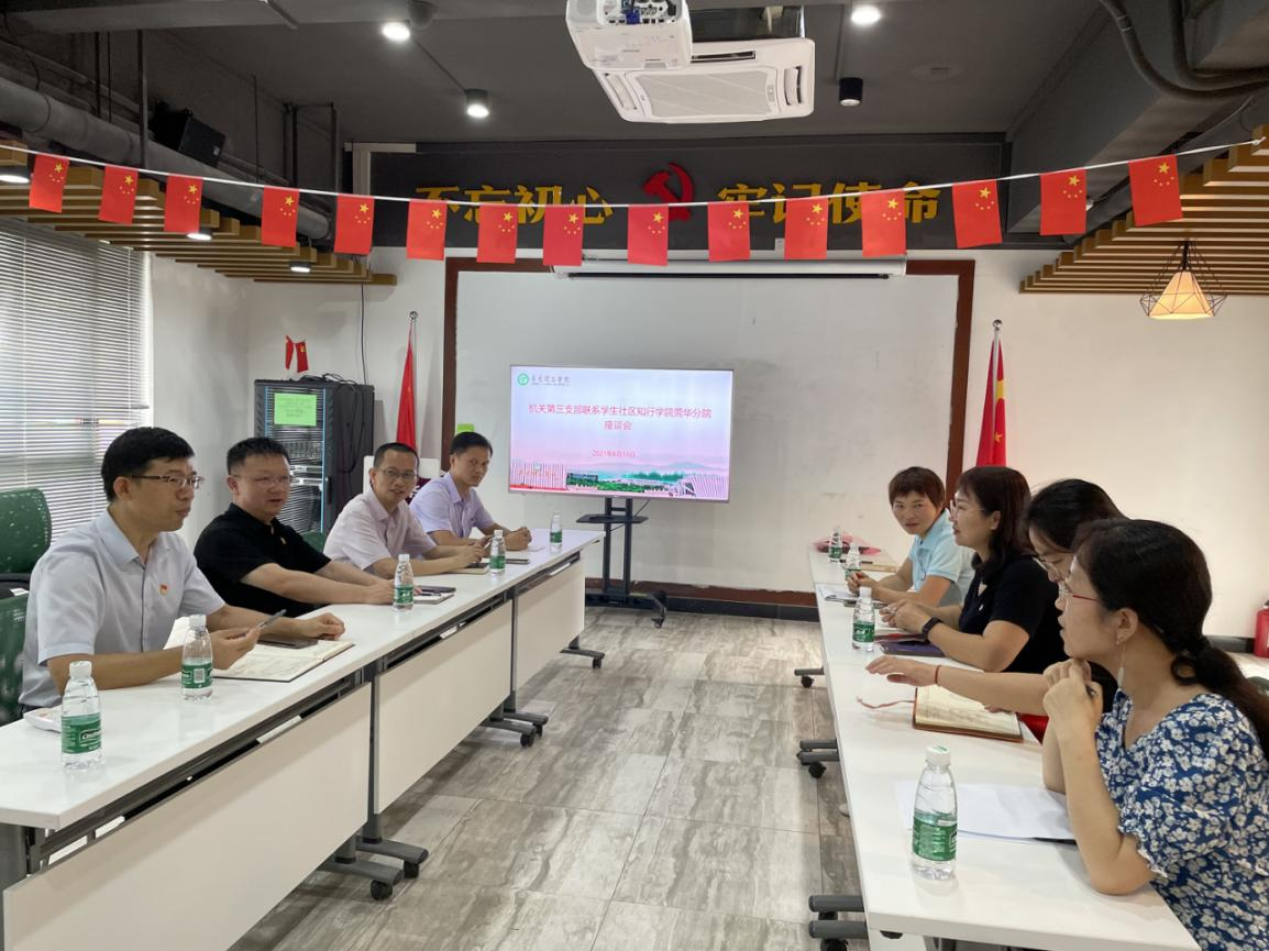 6月10日下午,机关第三党支部走进莞华社区,针对前期学生反馈较多的民生实事开展回访,了解民生实事解决进度,听取学生对社区、学校工作建议,并与莞华社区党支部开展座谈交流。机关第三党支部全体党员、莞华社区党支部委员以及社区辅导员(驻校社工)参加了活动。