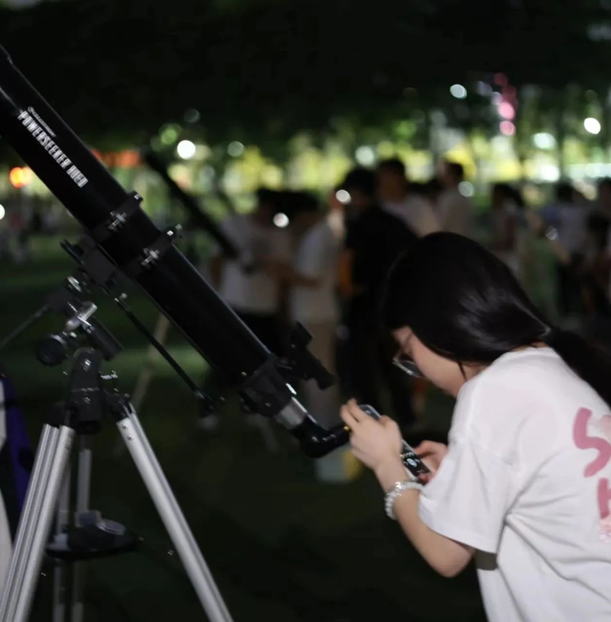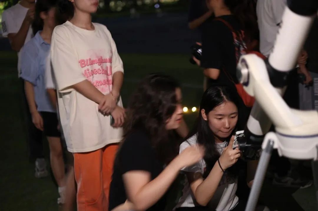 在观测过程中,同学们积极参与其中,通过实操过程,不断巩固工作人员的指导内容,细致的找察观测目标。通过小组的默契配合,各组都完成月亮观察并采集到月亮照片,在取到成果的同时内心也感到十分喜悦。