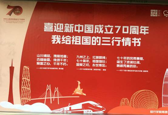 为迎接祖国70华诞,增强同学们的爱国主义情怀,同时秉承知行学院“知行合一,立德树人”的发展理念,莞逸社区社工于9月18日至22日举办了“我给祖国的三行情书”征集活动。